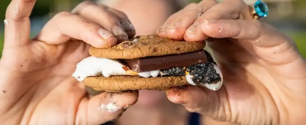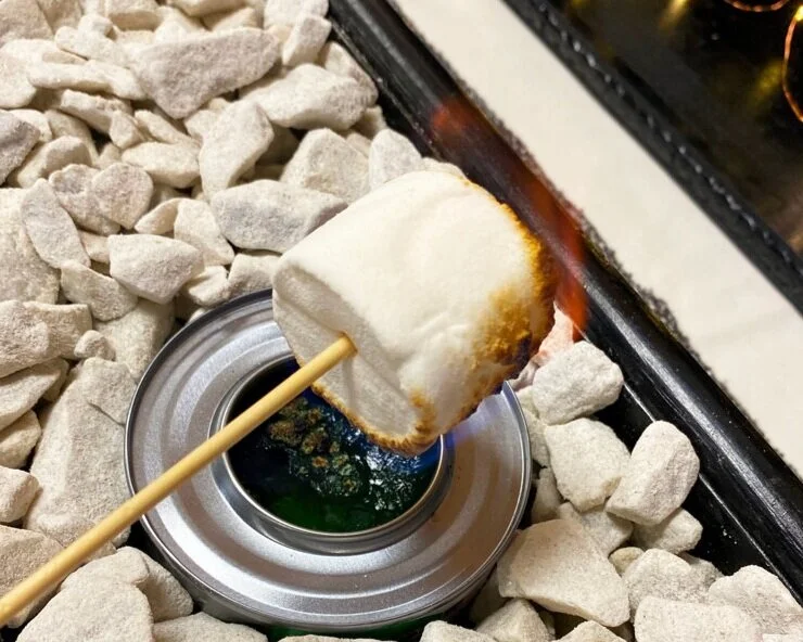 Bunătățile S’mores din candy bar sunt realizate din ingrediente proaspete, iar coacerea lor se face chiar în fața ta și a invitaților tăi!