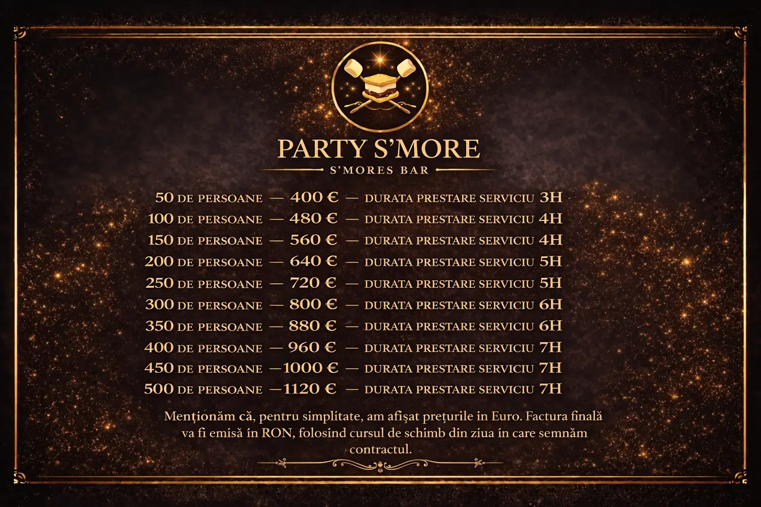 Suntem Andreea și Ștefan, fondatorii Party S’More. Am transformat desertul clasic s’mores într-o experiență interactivă pentru petreceri și evenimente, printr-un S’Mores Bar unde invitații își pregătesc propriul desert într-un mod distractiv și memorabil.Party S’More este mai mult decât un candy bar – este o experiență care aduce oamenii împreună, încurajează socializarea și creează momente autentice. Motto-ul nostru este „Povestim la un altfel de fum” – fumul dulce al marshmallow-ului rumenit, în jurul căruia oamenii se adună și creează amintiri frumoase.