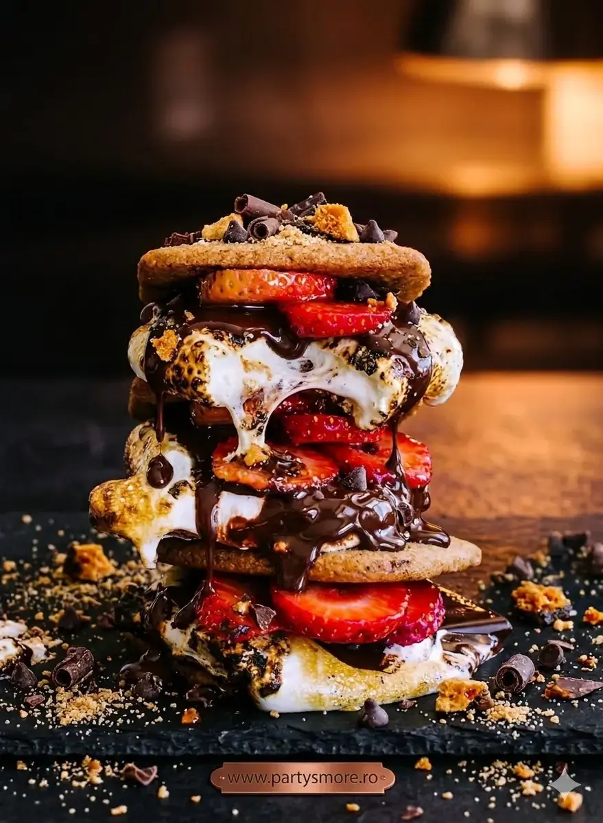 La Party Smore, desertul nu se servește… ci prinde viață chiar în fața invitaților. Fiecare invitat are ocazia să își topească singur bezeaua, pentru un moment jucăuș și interactiv, iar echipa noastră completează desertul cu biscuiți crocanți, creme fine și fructe proaspete. Rezultatul? O varietate aproape nelimitată de combinații – de la dulci și crocante, la dulci-sărate, dulci-acrișoare sau fine și moi – toate transformând evenimentul într-o experiență memorabilă și delicioasă.